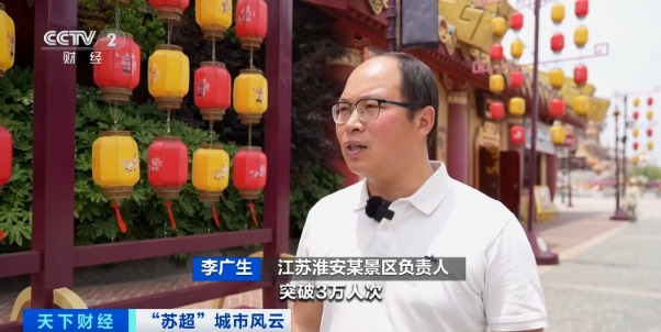 江苏淮安某景区负责人李广生:“苏超”赛事期间,景区的单日客流量,突破三万人次,较平时增长了近3倍,外地游客占比超过八成。
